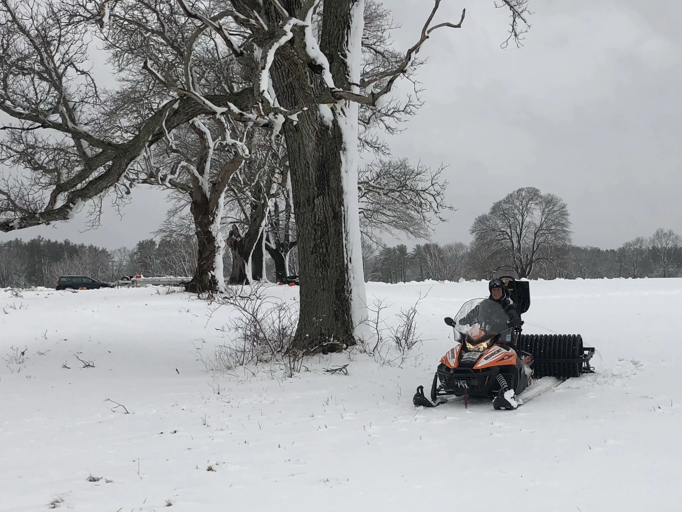 Our intrepid volunteers John and Greg headed out to Appleton Farm this morning to dig out the gear from its heavy wet snow blanket.